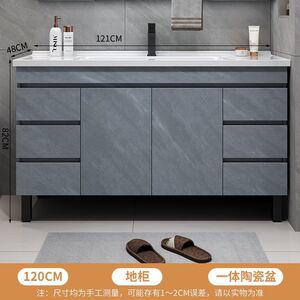 落地柜120灰色-单独下体柜一体陶瓷盆