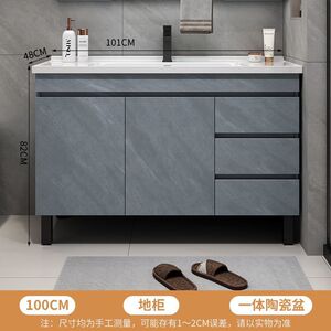 落地柜100灰色-单独下体柜一体陶瓷盆