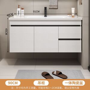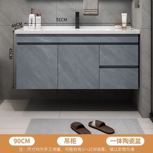 吊柜90灰色-单独下体柜一体陶瓷盆