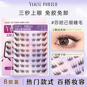 ムーンプリンセスつけまつげ、自然に厚い8列シングルクラスター、取り外し不要のまつげ、Suda Jiの接着剤不要のつけまつげ