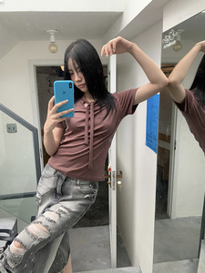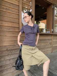 [9hour] フレンチストラップラウンドネック半袖Tシャツレディース2025夏スタイル右肩トップスレディースc250405