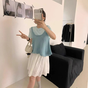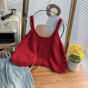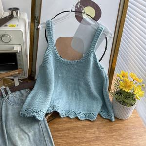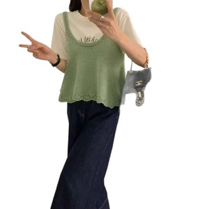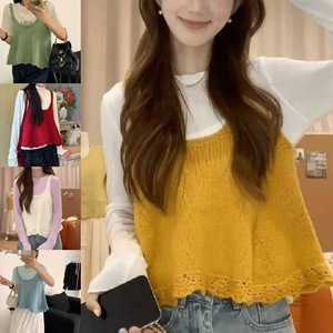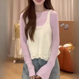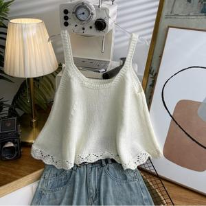韩系跨境减龄花边针织吊带背心秋冬短款叠穿甜美风无袖毛衣马甲女