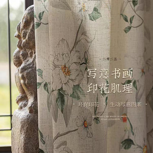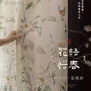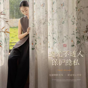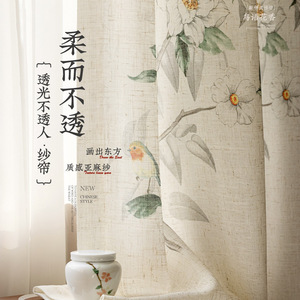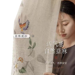 中古风亚麻纱面料透光不透人客厅阳台纱帘半遮光窗帘中式纱帘批发