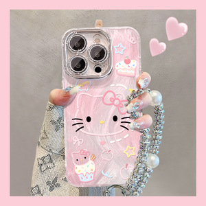 かわいい kt 猫 Apple 16promax 携帯電話ケース iphone13 スタンドブレスレット 15 フェザーヤーン 14 保護カバー