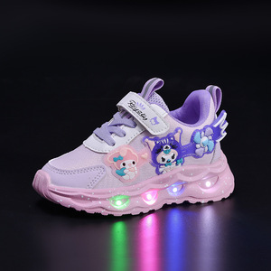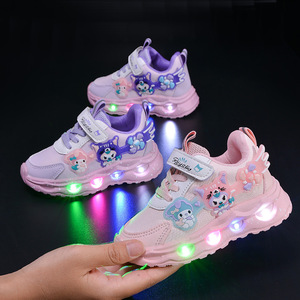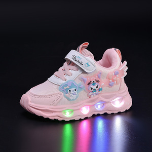 ライト付きクロミガールズスポーツシューズ2025春秋新作子供用レザーLED発光ランニングシューズ小中型子供用