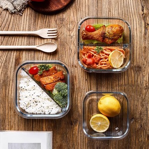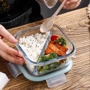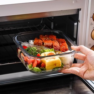 微波炉耐热玻璃上班族便携饭盒餐盒家用盒正方形分隔式密封保鲜盒