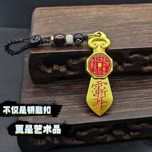 道教真鍮七星剣車のキーホルダー回転縁起の良い安全のお守り幸運の車のキーホルダーペンダント