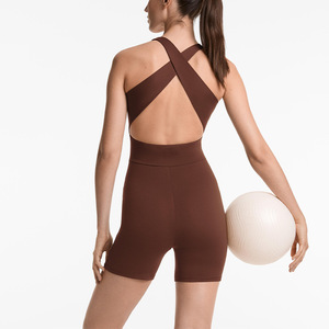 クロスボーダー夏の新しいクロススポーツビューティーバックヨガジャンプスーツ女性のヌードヒップリフティングタイトフィットネススーツジャンプスーツ