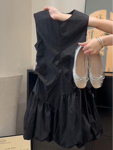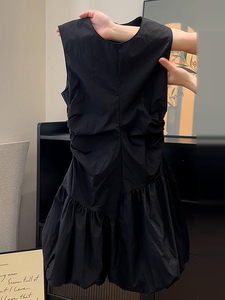 フレンチスイートプリンセスブラックノースリーブベストドレス女性の夏の2025新しい小さな花のつぼみスカート