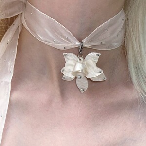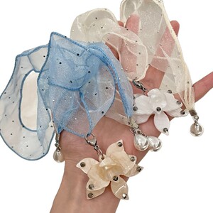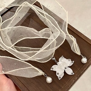 ニッチなハイエンドデザイン水玉模様ホットダイヤモンドロングリボンチョーカーパールフラワーペンダントネックレス鎖骨チェーンアクセサリー
