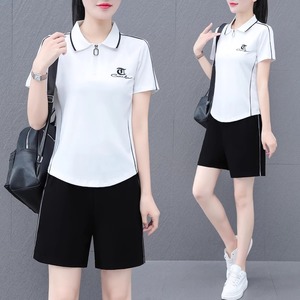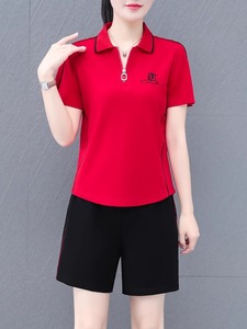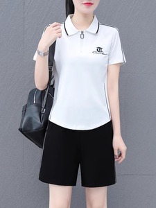 冰丝短袖短裤运动套装女夏季2025新款宽松速干夏天翻领薄款两件套