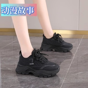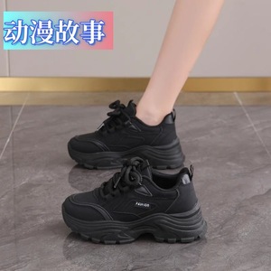 踩屎感黑色运动鞋女2025春季新款百搭老爹鞋防滑软底鞋子