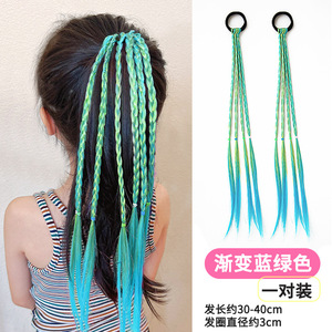 儿童假发辫子女童抓夹马尾丝带双麻花长辫子头饰蝴蝶结仿真假发辫