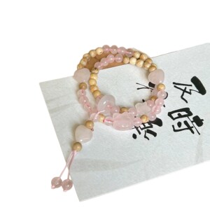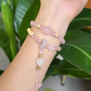 卸売天然水晶ローズクォーツダブルサークル kt 猫ブレスレット新鮮で甘いピーチピンク女性の人気のミルキーウッドブレスレット