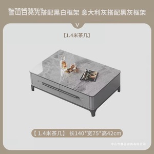 1.4m シングルコーヒーテーブル + 両面格納式テレビキャビネット ブラック + グレーフレーム (12mm 厚の岩)⚑⚑