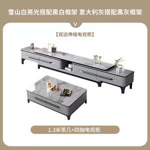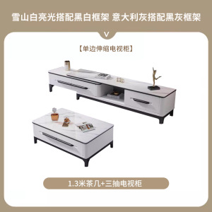 1.3m シングルコーヒーテーブル + 片面伸縮テレビキャビネット黒 + 白フレーム (12 mm 厚の岩)⚑⚑