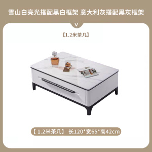 1.2m シングルコーヒーテーブル + 両面格納式テレビキャビネット黒 + 白フレーム (12 mm 厚の岩)⚑⚑