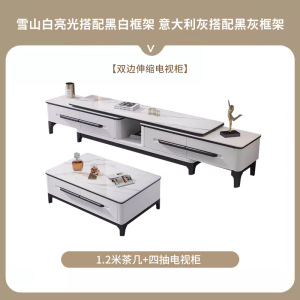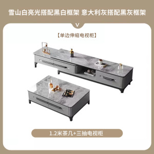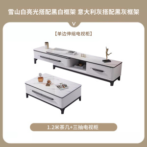 1.2m シングルコーヒーテーブル + 片面伸縮テレビキャビネット黒 + 白フレーム (12 mm 厚の岩)⚑⚑