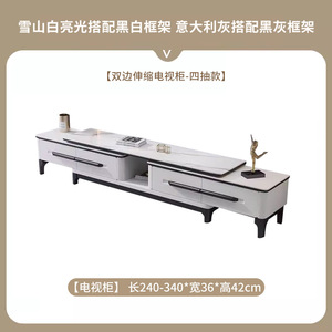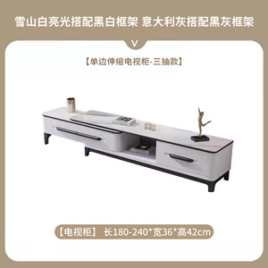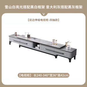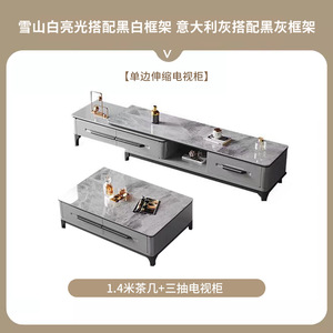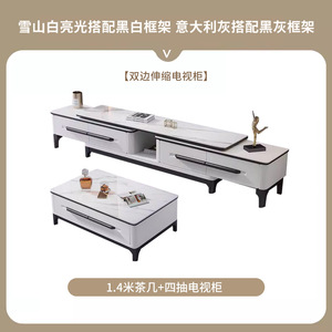 1.4m シングルコーヒーテーブル + 片面伸縮テレビキャビネット黒 + 白フレーム (12 mm 厚の岩)⚑⚑