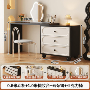 Xuanhei 100 テーブル + 60 黒と白の 3 段引き出し + クラウドミラー