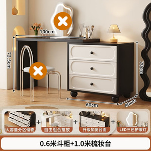 Xuanhei 80 テーブル + 120 黒と白の 6 段引き出しキャビネット + ドレッシングスツール