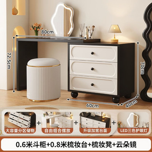 Xuanhei 80 テーブル + 60 黒と白の 3 段引き出し + ドレッシングスツール