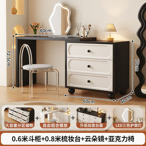 Xuanhei 80 テーブル + 60 黒と白の 3 段引き出し + クラウドミラー
