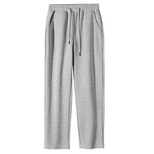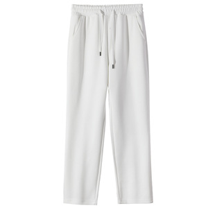 春秋款华棉复合牛奶丝卫裤宽松运动裤纯色平口抽绳休闲直筒长裤