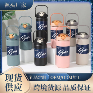 跨境高颜值大容量双饮吸管保温杯304不锈钢学生户外便携运动水壶