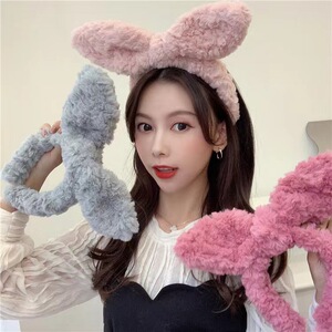 秋冬大蝴蝶结发箍ins韩风立体兔耳朵洗脸发箍网红发饰毛绒发箍女