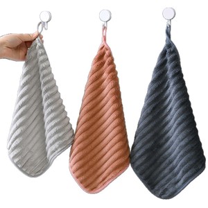 吊り下げ可能なコーラルベルベットの家庭用キッチンハンドタオル、非常に柔らかく吸収性のあるコーラルベルベットの正方形のタオル、家庭用ハンカチ、バスルーム