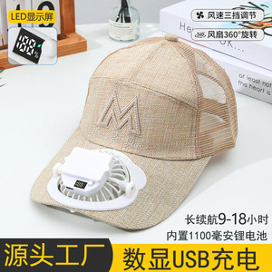 夏用大人用ファン付き帽子 USB 充電式デジタルディスプレイ電源サンシェード日焼け止め通気性レターダックタンメッシュハット