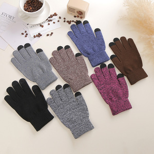 冬用の男性と女性用のクロスボーダータッチスクリーン手袋、ベルベットの厚みのあるサイクリンググローブ、屋外ニット滑り止め暖かい手袋が在庫あり