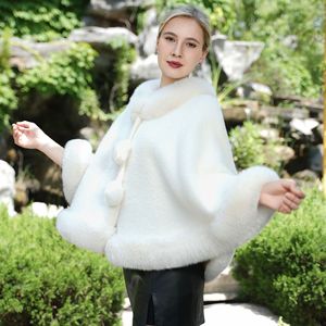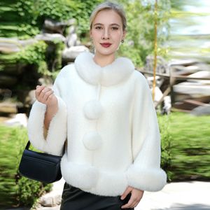 秋と冬の新しいクロスボーダー白模造毛皮カーディガンマントマントぬいぐるみ襟ショールコートチャイナドレス付き女性用