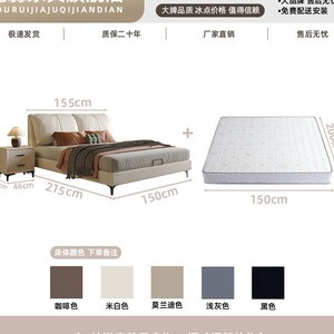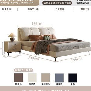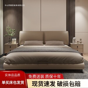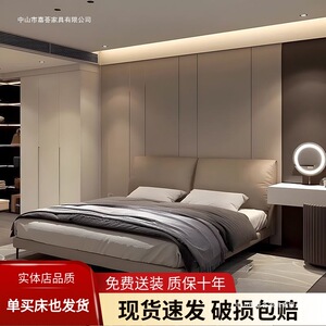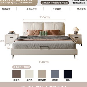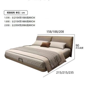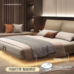 イタリアのミニマリスト象の耳レザーベッドマスターベッドルーム大型ベッドモダンシンプルなウェディングベッドセンサーライトサスペンションベッドダブル
