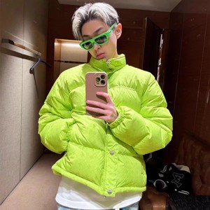 2025 新しいクロムハーツ CH クロムハーツ トレンディなブランド ダークパターン 蛍光グリーン スタンドカラー ダウンジャケット 男女兼用
