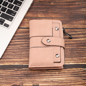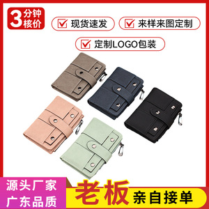 韓国版 ins 学生財布女性無地カードホルダーコイン収納女性バックルマルチカードスロット財布ロゴ加工
