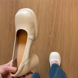 羊皮版~静音底职业通勤圆头粗跟棕色高跟鞋女气质高级不累脚单鞋