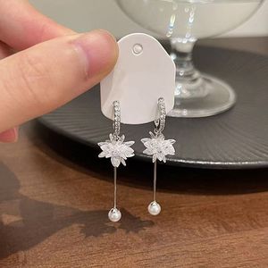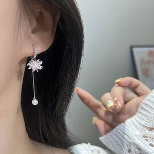 s925 シルバー針イヤリングクリスタルアイスフラワーパールタッセルイヤリングライト高級ニッチデザインファッショナブルな気質イヤリング女性用