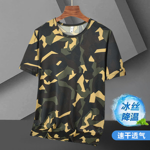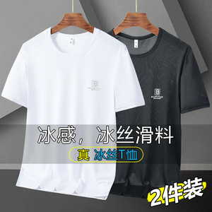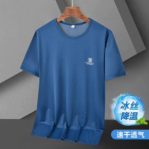 2025 新高弾性スポーツ半袖 Tシャツメンズ大きいサイズ夏アイスシルククールトップ Tシャツ