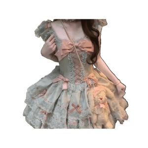 甜美Lolita洛丽塔蝴蝶结方口领连衣裙夏季新款减龄显瘦蓬蓬公主裙