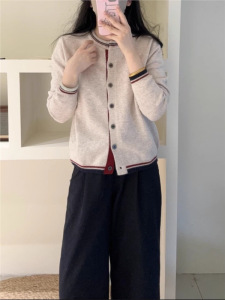 春と秋の新作ニットカーディガンセータージャケットレディースカラーブロックファッションシンプル英国高級ウェア美しいトップス