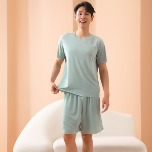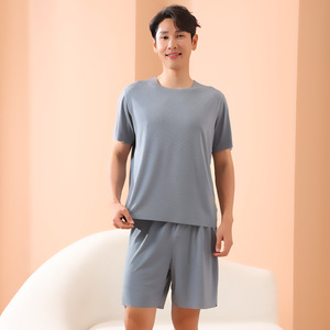 カップルスタイルルーズ夏アイスシルクパジャマセット若者カジュアルホーム無地ドレープクールスーツ男性と女性用