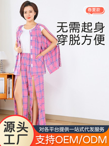 骨折患者の術後着用用のジッパー付き病院ガウン、寝たきり高齢者用の女性用パジャマ、着脱が簡単な看護服、純綿