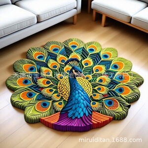 厂家直销新款异形孔雀客厅吸水防滑脚垫卧室床边毯耐脏易打理脚垫