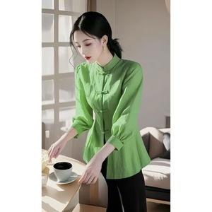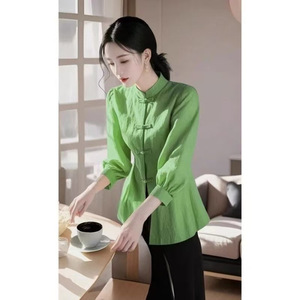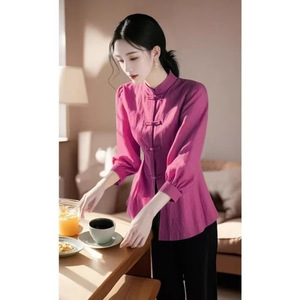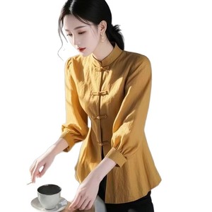 新しい中国風のトップス 2025 春の新しいスタイルのハイエンドの超見栄えの良いユニークな美しいジンジャー シャツの新製品