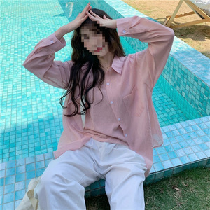 女性用無地半透明日焼け止めシャツ、夏用薄手カーディガン、ニッチなドレープブラウス、シャツジャケット、トップス