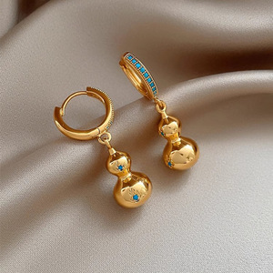リアルゴールド電気メッキの新しい中国風の中世スタイルのゴールデン小さなひょうたんイヤリング、フェミニンで絶妙なマイクロ象嵌ジルコンイヤリングとイヤリング