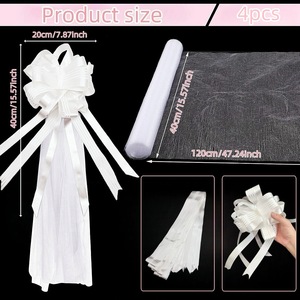 4 ピースホワイトウェディングベンチリボンロングチュールテールチャーチチェア通路装飾結婚式の車の装飾