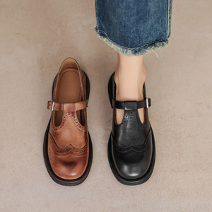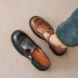 外国貿易輸出 414243 大きいサイズカレッジスタイルレトロポリッシュフラワーブローグ多用途ラウンドトゥ太いヒール小さな革靴